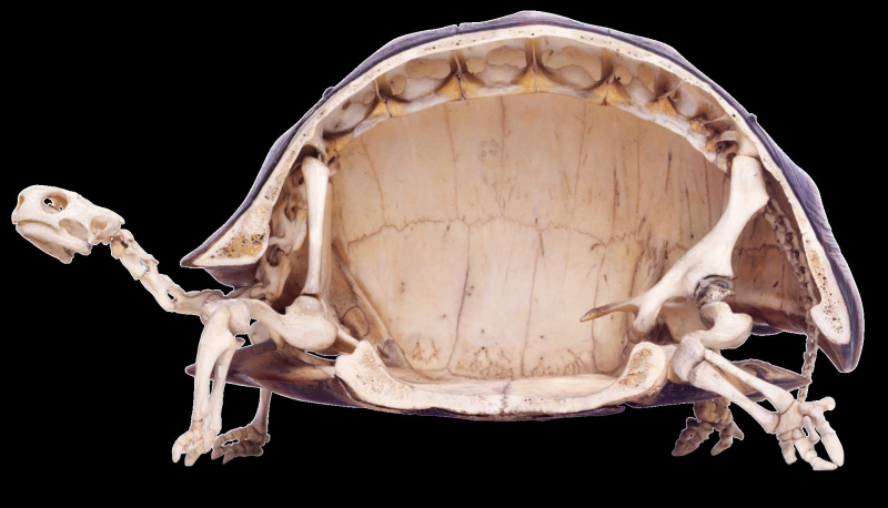 이 천정의 구조형태(또는 구조미학)는 어쩌면 내가 20년 동안 만들고 싶어하던 거북이 등껍질 척추 구조를 어느정도 구현한 것이라고 할 수 있는데... 어… 그게 뭔가요? 일단 거북이 등껍질 구조를 살펴보자. 거북이 등껍질이 주는 단단하고 단순한 인상에 비해 그 내부의 껍질을 잡아주는 구조와 등뼈 간의 섬세하고 세밀한 연결 -아치라는 선의 연결에서 면을 바치는 구조로 이어지는- 을 보면 그 매력에 푹 빠질 수밖에 없다. 만약 신이 거북이의 등껍질 구조를 하나하나 세심하게 디자인하셨다면 디자인상을 몇 개는 받으셔야 마땅할 것이다. 이 멋진 구조의 기본적인 원리가 우리의 제안에서 천정 면을 바치는 역삼각 트러스 형태의 연결로 어느정도 구현이 되었다고도 볼 수 있겠다.